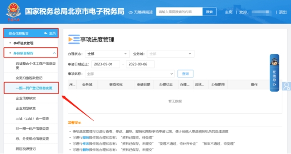 二、綜合信息報告—身份信息報告—一照一碼戶登記信息變更。