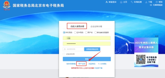 在新版登錄界面,點(diǎn)擊自然人業(yè)務(wù)下方【用戶注冊(cè)】;進(jìn)入賬戶注冊(cè)界面。勾選“我已閱讀并同意《個(gè)人信息保護(hù)告知書》《人臉識(shí)別服務(wù)協(xié)議》”,點(diǎn)擊“下一步”;在校驗(yàn)身份信息頁(yè)面填寫姓名、證件類型、證件號(hào)碼、性別、國(guó)籍(地區(qū)), 點(diǎn)擊下一步,拖動(dòng)滑塊驗(yàn)證;基本信息填寫可自行設(shè)置密碼,密碼設(shè)置要求長(zhǎng)度為8-16個(gè)字符且必須包含數(shù)字、字母(區(qū)分大小寫)、特殊字符(包括.@$% *#_+-&^)三者中至少兩種,填寫手機(jī)號(hào),點(diǎn)擊“獲取驗(yàn)證碼”。查收手機(jī)短信,填寫短信驗(yàn)證碼,點(diǎn)擊下一步;進(jìn)行人臉識(shí)別驗(yàn)證。可選擇“稅務(wù)APP掃碼認(rèn)證”,也可選擇“個(gè)人所得稅APP掃碼認(rèn)證”。最后人臉驗(yàn)證成功提示注冊(cè)完成即可。