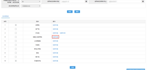 答:您好,請(qǐng)點(diǎn)擊【地方特色】-【我要辦稅】-【稅費(fèi)申報(bào)及繳納】-【房產(chǎn)稅、城鎮(zhèn)土地使用稅申報(bào)】-【財(cái)產(chǎn)和行為稅納稅申報(bào)】,進(jìn)入后選擇“城鎮(zhèn)土地使用稅”后方【稅源采集】進(jìn)入;點(diǎn)擊屏幕下方【新增】,填寫納稅人基礎(chǔ)信息和稅源基礎(chǔ)信息,點(diǎn)擊屏幕下方【保存】;點(diǎn)擊【維護(hù)應(yīng)稅信息】進(jìn)入土地信息界面,填寫土地相應(yīng)信息,若享受減免稅優(yōu)惠政策,點(diǎn)擊下方【新增】進(jìn)行維護(hù)后,點(diǎn)擊【保存】,完成城鎮(zhèn)土地使用稅稅源信息采集。