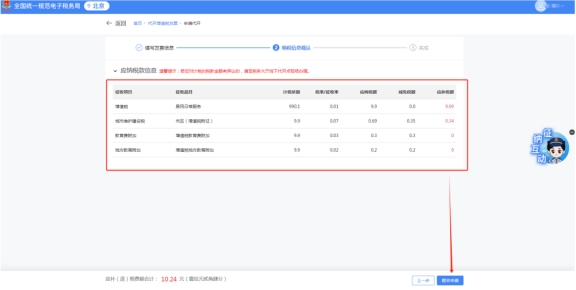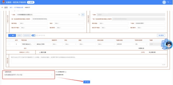如需在發(fā)票票面?zhèn)渥⑵渌畔?,可在“備注信息”一欄填寫需要備注的?nèi)容,否則無(wú)需填寫。點(diǎn)擊“下一步”,進(jìn)入納稅信息確認(rèn)頁(yè)面。