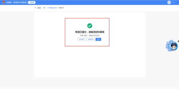 確認(rèn)系統(tǒng)自動(dòng)計(jì)算的應(yīng)納稅費(fèi)信息,無(wú)誤后點(diǎn)擊“提交”,顯示“提交成功”后等待稅務(wù)機(jī)關(guān)審核即可(稅務(wù)機(jī)關(guān)將在半個(gè)工作日內(nèi)完成審核,屆時(shí)您可按照下方流程查看已提交的申請(qǐng)的審核狀態(tài)并進(jìn)行后續(xù)操作)。