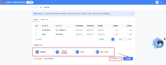 進(jìn)入繳稅頁(yè)面后,可以看見(jiàn)需要繳納的稅款明細(xì)及支付方式,目前支付方式包含銀聯(lián)繳費(fèi)、銀行端(查詢繳款)、云閃付、微信、支付寶等方式。也可以跨境繳稅。選擇完方式后,點(diǎn)擊立即繳款。