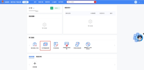 進(jìn)入后,點(diǎn)擊熱門業(yè)務(wù)-代開(kāi)增值稅發(fā)票。