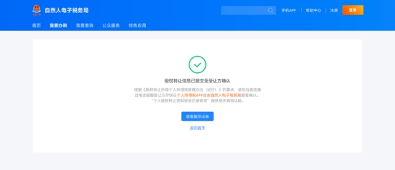 如果受讓方為自然人,需要其在個人所得稅APP或者自然人電子稅務局(WEB端)查看并確認信息;如果受讓方是企業(yè),則需要其在扣繳客戶端或通過自然人電子稅務局網頁端扣繳功能查看并確認信息。