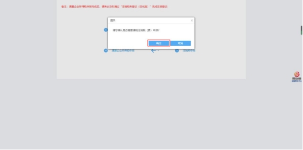 7、“是否需要清稅注銷稅申報”點擊“確定”。