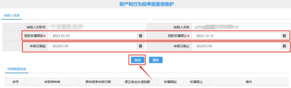 注意:如果查詢不到,建議將稅款所屬期起止選擇采集年份的1月1日-12月31日;申報日期清空再做查詢即可。